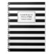 Individuell anpassbares Notebook mit schwarz-weiß Streifen Muster. Sie können den Text entweder bearbeiten oder ganz löschen.