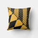 Ein modernes Design-Kissen mit geometrischen Mustern in Ocker und Schwarz mit einer Touch Gold (bedruckt). Sie können das Design skalieren oder drehen und Texte sowie die Formen unter den Textfeldern bearbeiten oder löschen.