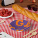 GRAD in fett orangefarbenen Schriftzeichen rund um die Ränder dieser lila Papierschalen aus Abschluss - ideal für Snacks, Salate, Desserts und vieles mehr. PASSEN Sie die passenden Artikel und weitere Farbkombinationen in unserem Shop.