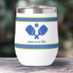 Ein super lustiger Wein oder Kaffeetscher mit gekreuzten Paddeln und farbenfrohen blau-grünen Streifen. Fügen Sie Ihren benutzerdefinierten Text zu personalisieren. Ändern Sie einfach die Farben. Ein perfektes Geschenk für Freunde, Turnierpartner, Trainer oder alle, die dieses phantastische Pickleball-Spiel Lieben.