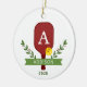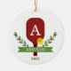 Personalisiertes Pickleball Weihnachtsschmuck. Erinnern Sie sich an das Jahr des Pickleball, das mit einem niedlichen festlichen Ornament gespielt wird. Personalisieren Sie mit einer Initial-Innen des Paddels, und fügen Sie Ihren Namen und Jahr. In einer klassischen Rot-Grün-Palette mit einem gelben Pickleball, aber ALLE FARBEN SIND DURCH SIE RELATIV! Sie können neue Farben für Paddel, Pickleball, Heilige + Beeren, Banner und Text wählen. Achten Sie einfach darauf, die gleichen Änderungen an der anderen Seite des Ornaments. © Kimbellished, LLC
