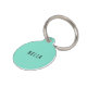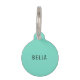 Minimaler Minze und schwarzer Hund ID Tag mit QR Code. Accessoires für Haustiere mit einem einfachen und modernen Stil. Personalisiert mit einem Namen auf der Vorderseite und Ihrem eigenen Code, einschließlich Ihrer Telefonnummer oder weiteren Informationen auf der Rückseite.