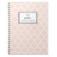 Blush Quatrefoil Muster Personalisiertes Notebook. Modernes Notebook mit einem roten und weißen Quarterfolienmuster. Dieses moderne und schicke Notizbuch wird sich als personalisiertes Geschenk eignen.