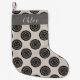 Tiefe, reiche mochafarbene, symmetrische Münzformen schaffen ein modernes Wiederholmuster auf einem taupe grauen Hintergrund. Ein eleganter Strumpf, der mit einem Namen personalisiert werden kann.