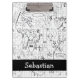 Personalisiertes Robot Rocket Ship und Alien Moon Schwarzweiß-Muster-Zwischenablage von Ricaso