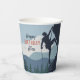 Die personalisierten Papiertassen, die auf einem Berg mit einem Wald unten stehen, sind so konzipiert, dass sie mit unseren On The Edge Kinderklettern und Geburtstagsfeiern übereinstimmen. "Happy Birthday [Name]" erscheint in robuster Schrift.