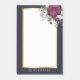 Hübsche personalisierte Post-Itanmerkungen in dunkelblauem mit einem hübschen Rosenblumenstrauß und Imitatgolddetails.