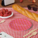 Personalisiertes rosa und orangefarbenes Prüfmuste Pappteller