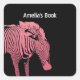 Personalisiertes rosa und schwarzes Zebra-Buchzeic Quadratischer Aufkleber