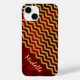 Dies ist ein besonders hübscher Fall für sie, mit einem hellgelben goldenen Imitat Glitzer Zickzack Muster schräg über einen lebendigen Hintergrund mit rotem Maronen-Gradienten platziert. Das untere Drittel des Falls ist rot mit ihrem Namen in Gold. Dieses elegante und glänzende Gehäuse wird Aufmerksamkeit erregen! *Bitte beachten Sie, dass das Bild gedruckt ist und keinen Glitzer enthält.