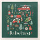 Ein rustikales, handgezeichnet Weihnachtsdesign mit gemütlichen und niedlichen Illustrationen des Campings- und Seenlebens. Die Farben sind in Grün, Rot und Weiß gehalten, und das aquamarine und Minzgrün ist dunkel. Dieses Ornament kann mit Monogramm-Initialen, einem Familiennamen oder einem anderen benutzerdefinierten Text personalisiert werden. Ein tolles Geschenkdesign für ein Seehaus, Naturliebhaber und Camping-Liebhaber.