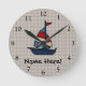 Personalisiertes Sailboat Blue/Tan Boy's Runde Wanduhr