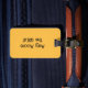 Personalisierter Gepäckanhänger auf einem warmen, gelben, soliden Hintergrund. Fügen Sie Ihren Namen, Ihre Zuhause-Adresse, Ihre E-Mail-Adresse oder andere Angaben hinzu, wie Sie möchten. Für spezielle Anfragen oder Fragen wenden Sie sich bitte an den Künstler unter wafadahdalcreates@gmail.com. © Wafa Y. Dahdal - Alle Rechte vorbehalten. WD Art