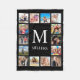 Erstellen Sie Ihre eigene personalisierte 14-Foto-Collage, Fleece-Decke mit Ihren individuellen Bildern auf einem einfachen, modernen schwarzen Hintergrund. Das Deckengesicht aus Fleece enthält auch Ihr Monogramm und Ihren Namen. Fügen Sie Ihre Lieblings-Fotos, Designs oder Kunstwerke, um etwas wirklich Einzigartiges zu schaffen.