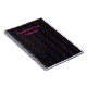 Ein schönes schwarzes Fraktal, das in ein Mosaik mit Ziegeln gedeckt wird, gibt einen Blick des befleckten Glases zu diesem gewundenen Notizbuch. Ursprünglicher Entwurf durch internationalen generativen Künstler Judi Suni Hall für Gingezel. Das Gingezel Schwarze plus Sammlung ist plus schwarz: Schwarzes plus das Weiß, schwarz plus die Farbe, schwarz plus neutrale Personen. Die Entwurfsstrecke von subtilem zu mutigem, zeitgenössisch zu Retro.