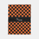 Modernes und trendy schwarzes und orange Schachbrettmuster mit dem schwarzen Streifen personalisiert mit Ihren Namensgeschenken. Karierte Geschenkideen für Männer und Frauen.