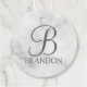 Personalisierte Monogram und Name Gift Tags verfügen über personalisierte Monogramme im Stil eines klassischen Graue Schriftartes und tragen den Namen im Stil eines Serif-Schriftartes auf weißem Marmorhintergrund. Ideal für Ferien, Wiedersehen und besondere Anlässe.