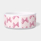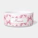 Girly Pink Bow Dog Bowl fügt einfach den Namen Ihres Haustieres in kursiven Skript-Schriftart hinzu. Trendy coquette rosa Bugmuster.