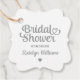 Elegante, kundenspezifische Hochzeitskartentafeln mit einem modernen Kalligraphieskript "Brautparty"-Typografie-Design mit niedlichem Herzakzent und dekorativer Kantenform. Personalisieren Sie mit dem Namen der Braut und ein persönliches Dankeschön für die gefeierte Nachricht auf der Rückseite. Sauberes und einfaches Design. Beachten Sie, dass das Farbschema silber-grau und weiß geändert werden kann.