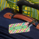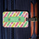 Farbenfrohe Skateboardmuster in den Sommerfarben auf einem personalisierten Gepäckanhänger.
