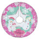 Drei Schneemänner verschiedener Größen mit rosa und blauen Winterhütten, einer mit eisbedeckten Skaten, ein rosa und aqua-blauer Hintergrund mit weißen Polka-Punkten und weißen Schneeflocken mit rosa Banner, die Sie auf einem Urlaubsbaumrock, den Sie für die nächsten Jahre sicher Liebe haben, ganz einfach mit Ihrem Familiennamen personalisieren können!