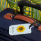 Sonnenblume Gepäckmarke mit gelber Sonnenblume und blauem Hintergrund. Schwarze Schriften können mit Ihrem eigenen Text angepasst werden. Ein blumengeschmücktes Landstück, um den Überblick über den Koffer oder die Tasche behalten.