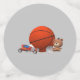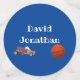 Personalisiertes Spielzeug koordiniert das Design mit den bezaubernden Babyduscheinladungen, Dekorationen und Accessoires aus dem Kinderzimmer "Boy Toys". Der Name des Kindes wird in weißer Schrift auf einem hellblauen Hintergrund angezeigt. Auf einer Seite werden Bilder eines Baseballs und eines Basketballs angezeigt. Im Folgenden finden Sie Bilder eines Spielzeugrennwagens und eines Basketballs.