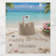Feiern Sie stilvoll mit einem individuellen Geburtstagsdesign zum Thema Strand, das Ihr Alter und Ihren Namen im Sand enthält. Dieses tropische Design umfasst eine landschaftliche Kulisse am Strand, farbenfrohe Muscheln und ist somit der perfekte Gruß für alle, die Sonne, Sand und Meer Lieben. Ideal für Meilenstein Geburtstage oder lässige Strandliebhaber!