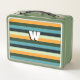 Personalisiertes Streifenmuster Monogramm Blau gel Metall Brotdose