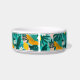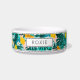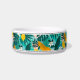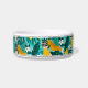 Die niedliche personalisierte tropische Schüssel für Hunde oder Katzen mit ihren stylishen Haustieren ist mit gelben Zitronenfrüchten, weißen Zitronenblüten und grünen Monstera-Blätter auf türkisfarbenem Hintergrund mit Ober- und Unterstreifen versehen. Personalisieren Sie Ihre persönlichen Daten mit dem Namen Ihres Haustiers.