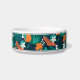 Für die stilvollsten Haustiere bietet diese niedliche personalisierte tropische Schüssel für Hunde oder Katzen ein Muster aus orangefarbenen Zitrusfrüchten, weißen orangefarbenen Blüten und grünen Monstera-Blätter auf marinebaublauem Hintergrund mit Ober- und Unterstreifen. Personalisieren Sie Ihre persönlichen Daten mit dem Namen Ihres Haustiers.