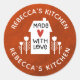 Ein personalisierter Aufkleber "made with Liebe" mit einem niedlichen kleinen Haus mit rotem Herz und den Wörtern, mit Liebe auf einem roten Aquarellhintergrund. Personalisieren Sie es, indem Sie Ihren eigenen Namen hinzufügen. Eine hübsche Touch für all Ihre hausgemachten Geschenke. Ideal für Weihnachtsgeschenke. Entworfen für Sie von BlackBerry Boulevard.