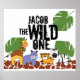 Wählen Sie die Größe, die Sie benötigen, dieses Poster für Ihr kleines wildes mit lustigen Safari-Tieren. Niedliche Illustrationen von Giraffen, Hippo, Tiger, Zebra und Dschungel-Blätter.