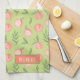 Dieses kalkgrüne Küchentuch hat einen eleganten Aquarellpfirsich und ein personalisiertes Grünmuster (die Rückseite ist weiß). Sie können dieses Design auch auf andere Produkte setzen!