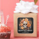 Ein auffallendes Halloween-Design mit einem Zuckerschädel, der von lebhaften orangefarbenen Blumen gerahmt ist und mit Ihrem Familiennamen oder Ihrer Botschaft personalisiert ist. Ideal für Halloween-Leckereien-Taschen, spukhafte Gastgeschenke oder Día de los Muertos. Dieses gotische Blumendesign bringt eine kühne, festliche Touch zu saisonalen Verpackungen.