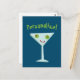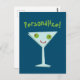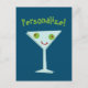 Personalisieren Sie es mit Ihrem Namen oder Ihrer Nachricht. Eine niedliche Illustration eines glücklichen Martini mit Olivenaugen. Ein lustiges Retro-Design für ein Cocktail-Party, Drinks nach der Arbeit, Freundesabend oder jede Feier.