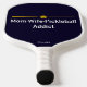 Soft navy blue paddle with playful phrase, optional personalized name, and subtle gold divider. Perfect for social, league, or gift-minded pickleball moms.