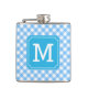 Personalize Stylish Baby Blue Gingham Monogram Flachmann