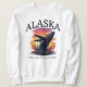 Personalized Alaska family vacation sweatshirt featuring a retro sunset design and a humpback whale illustration