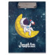 Dream big and aim for the stars with this adorable and customizable Clipboard design! Featuring a cute astronaut relaxing on a yellow crescent moon while holding a toy rocket, set against a starry night sky. Easily add your child's name or a motivational quote to make this Clipboard uniquely theirs for the 'Back To School' season. A fun and inspiring way to stay organized!