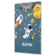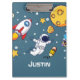 Explore the universe of learning with this super fun and customizable Clipboard! Featuring a cute astronaut, rocket, moon, and school supplies like a pencil and eraser floating in space, this design is perfect for inspiring young minds. Add your name or a special message to make this binder uniquely yours. A stellar choice for 'Back To School' and a great way to keep organized!