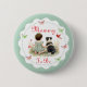 Girl's baby shower personalized Mommy to be button. Sweet baby girl sitting next to her little puppy dog in a patch of pretty watercolor flowers. Sage green and red wildflowers and butterflies background. Get one for each member of the family as a little baby shower favor gift.