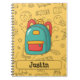 Gear up for a fantastic new school year with this cheerful and customizable notebook! Featuring a vibrant blue backpack surrounded by playful black-and-white school doodles like books, a globe, and a school bus on a bright yellow background. This fun design is perfect for organizing all your notes and assignments. Easily add your name, grade, or a special message to make this notebook uniquely yours. An exciting and personalized accessory for the 'Back To School' season!