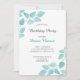 Personalized invitation for a birthday celebration, featuring a beautiful watercolor illustration of eucalyptus greenery. The text and its color can be edited. We offer matching party supplies and stationery.