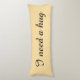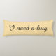 Personalized beige body pillows. Add custom text. Example: I need a hug. Elegant script typography. Long shape bedroom cushion for sleeping and hugging.