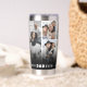 Personalized Best Dad Ever 8 Photo Collage Travel Mug. This heartfelt travel mug is perfect for celebrating your dad’s role as “Best Dad Ever.” Featuring a collage of eight cherished family photos, this mug captures special memories for a touching reminder wherever he goes. At the bottom, “Best Dad Ever” appears on each side over a sleek black gradient with heart accents near the text, adding a sentimental touch. You can personalize it further by adding kids' names with a small heart beside each one, creating a unique keepsake that brings warmth to every sip on the go. Ideal for Father’s Day, birthdays, Christmas, or any occasion, this travel mug combines a modern look with meaningful family mementos, perfect for a dad who values both style and treasured moments.