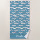 This colorful blue airplane beach towel design is perfect for any kids bathroom. This design features white airplanes flying through a blue sky with clouds. You can add your name at the bottom.