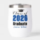Customize your own blue high school Class of 2026 graduate wine tumbler for a high school or college graduation party. Cool varsity letters for the year on a great custom commemorative keepsake for seniors.