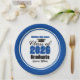 Customize your own blue high school Class of 2026 graduate paper plates for a high school or college graduation party. Cool varsity letters for the year on great custom decor for seniors.
