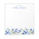 Bring a refined floral touch to your daily notes with this personalized desk notepad. A graceful arrangement of soft blue wildflowers blooms along the bottom edge, adding a fresh, calming accent without distracting from your writing space. Easily personalize with your name in elegant script calligraphy. Perfect for home offices, workspaces, or thoughtful gifts, this notepad blends functionality with timeless botanical beauty.